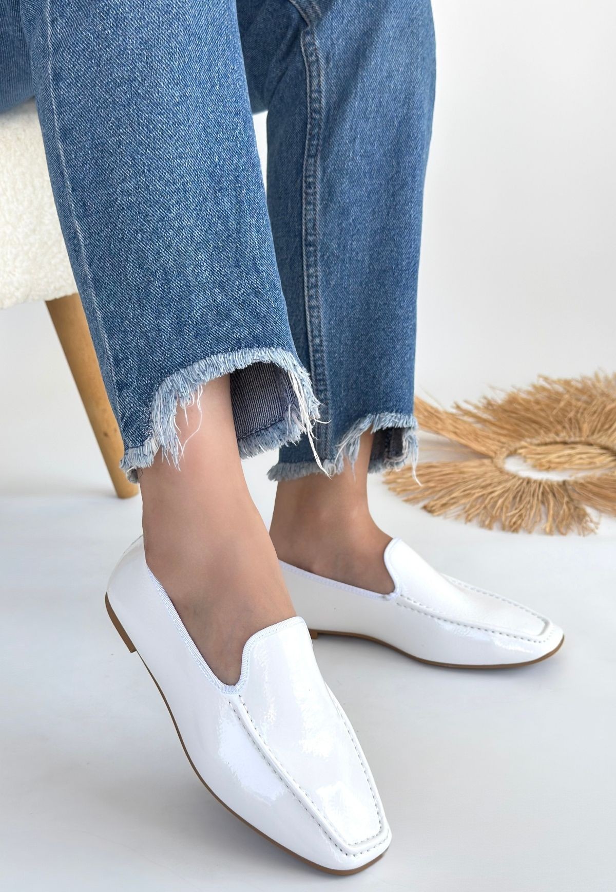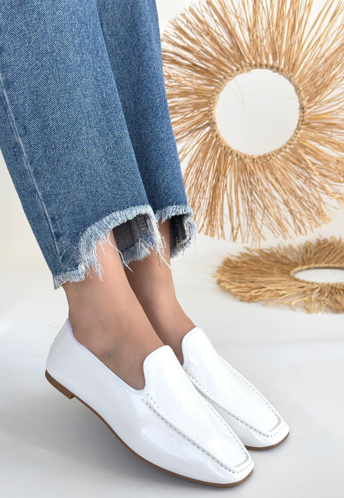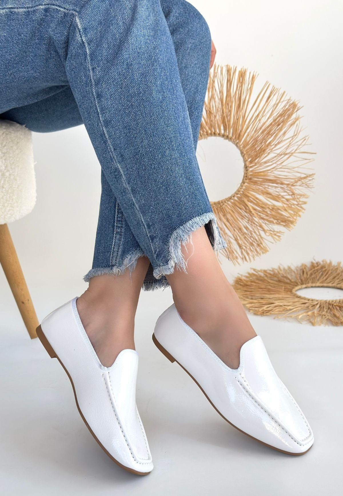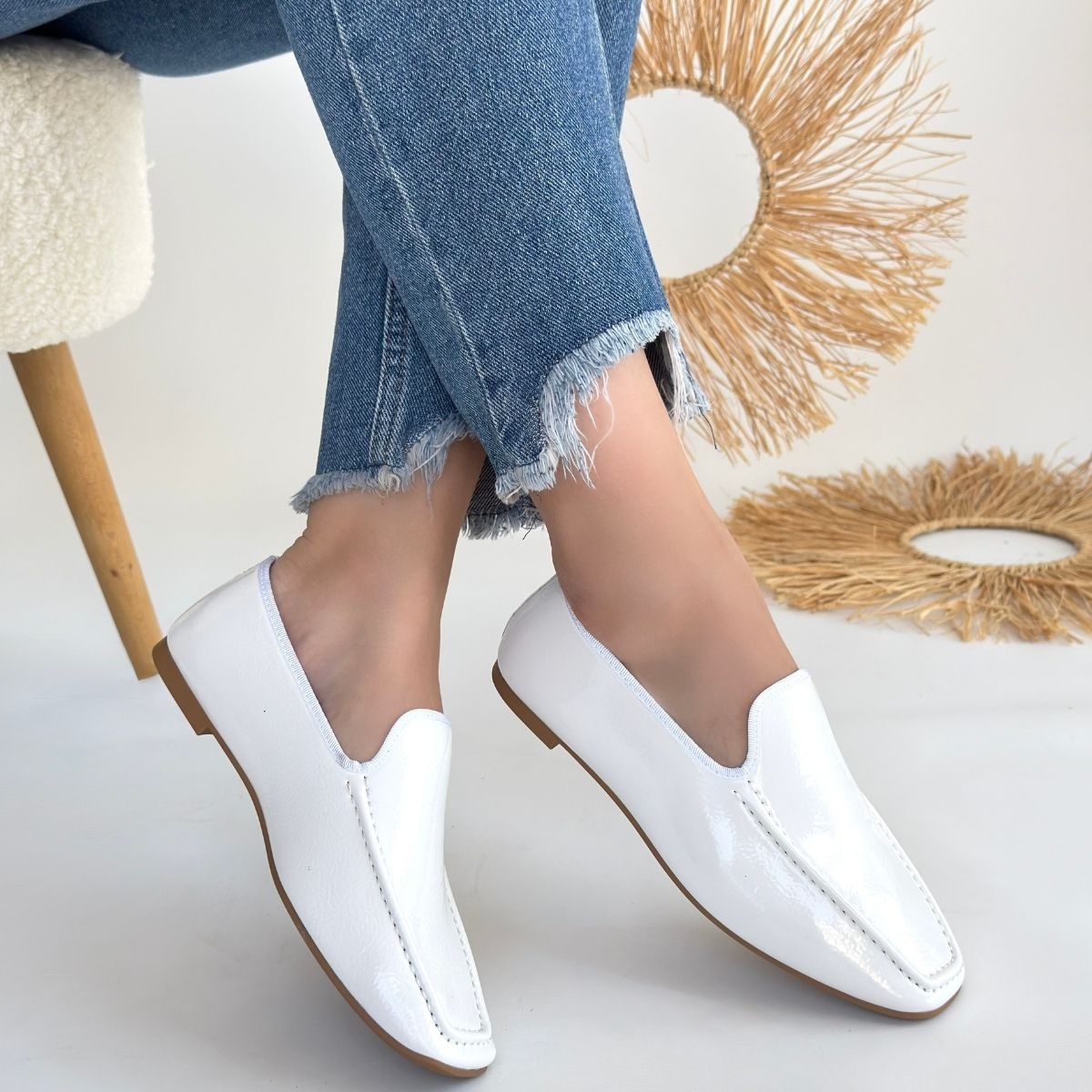 Babet Betra Beyaz Rugan Babet Ayakkabı