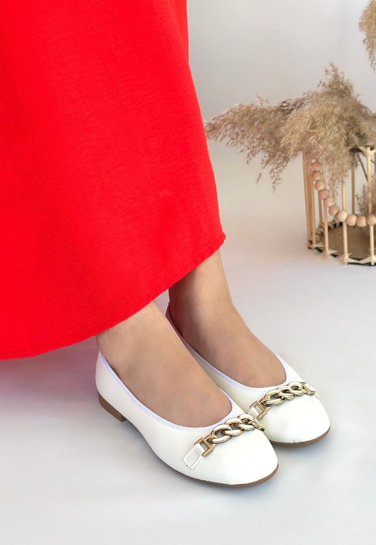 Babet Cleo Beyaz Cilt Babet Ayakkabı