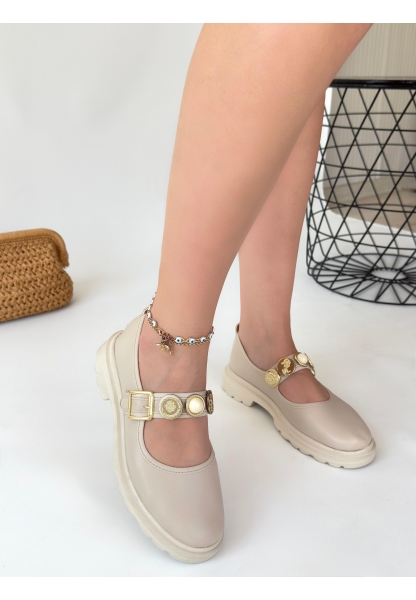 Babet Riwan Beyaz Cilt Babet Ayakkabı
