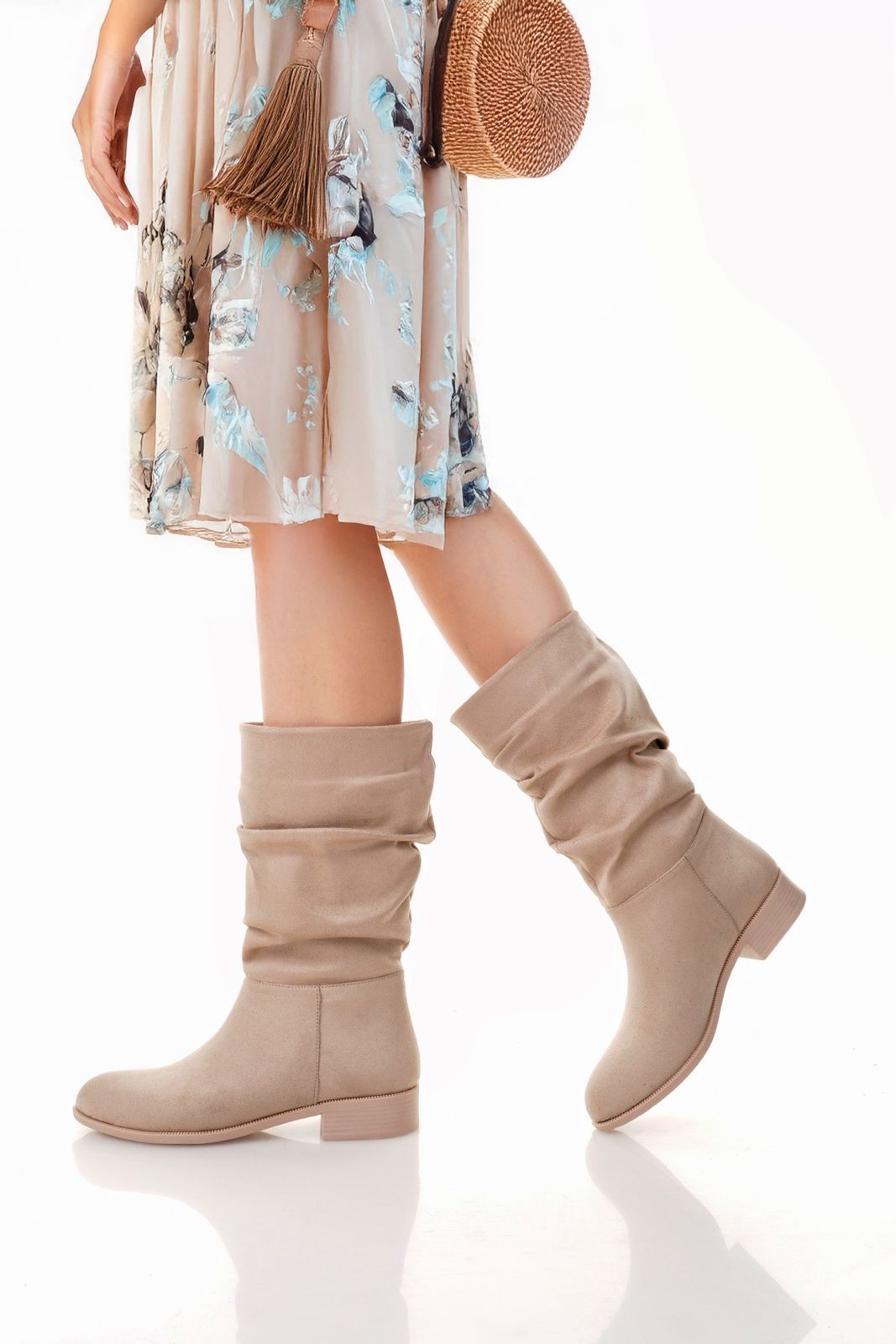 Detay: Topuklu Diz Altı Körüklü Çizme