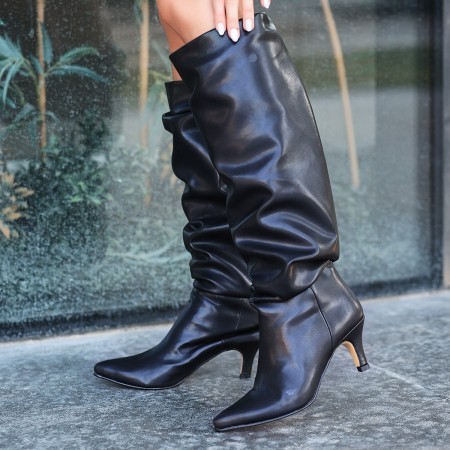 • Zelya Siyah Cilt Topuklu Çizme