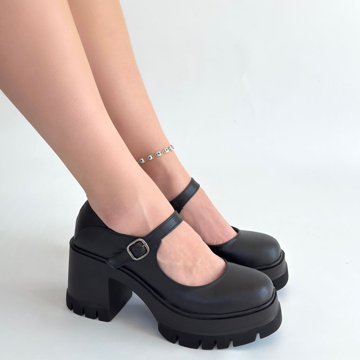 • Dlor Siyah Cilt Dolgu Topuk Ayakkabı
