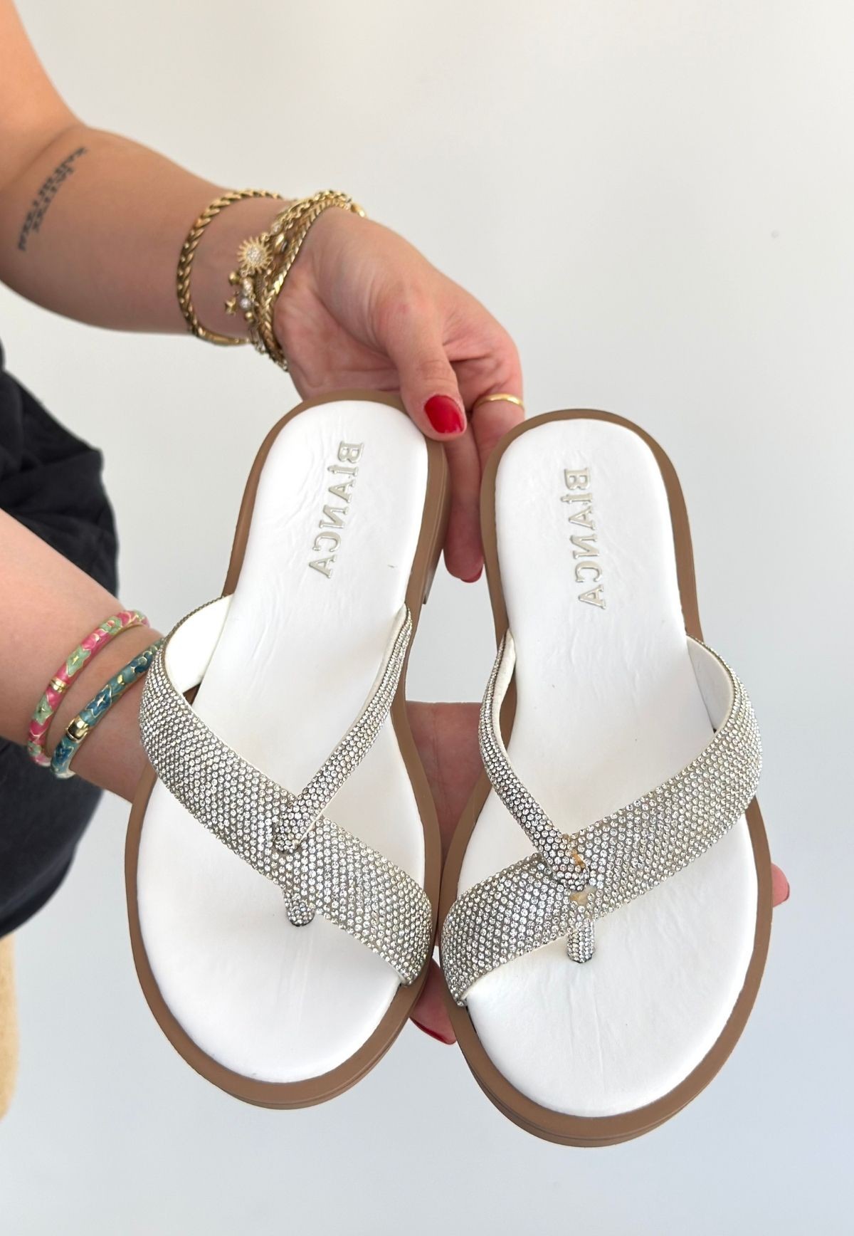 • Eday Gümüş Boncuk İşlemeli Terlik