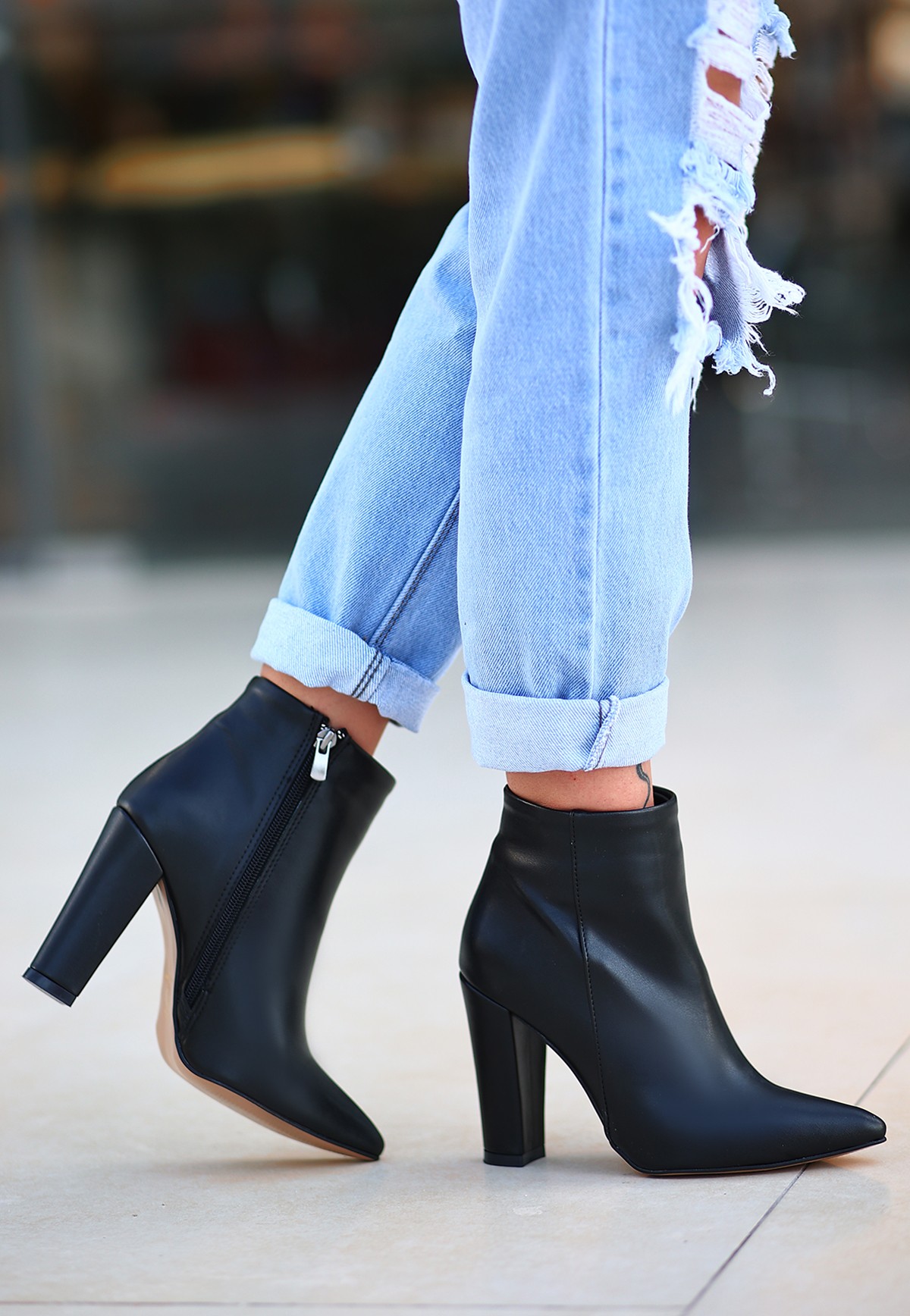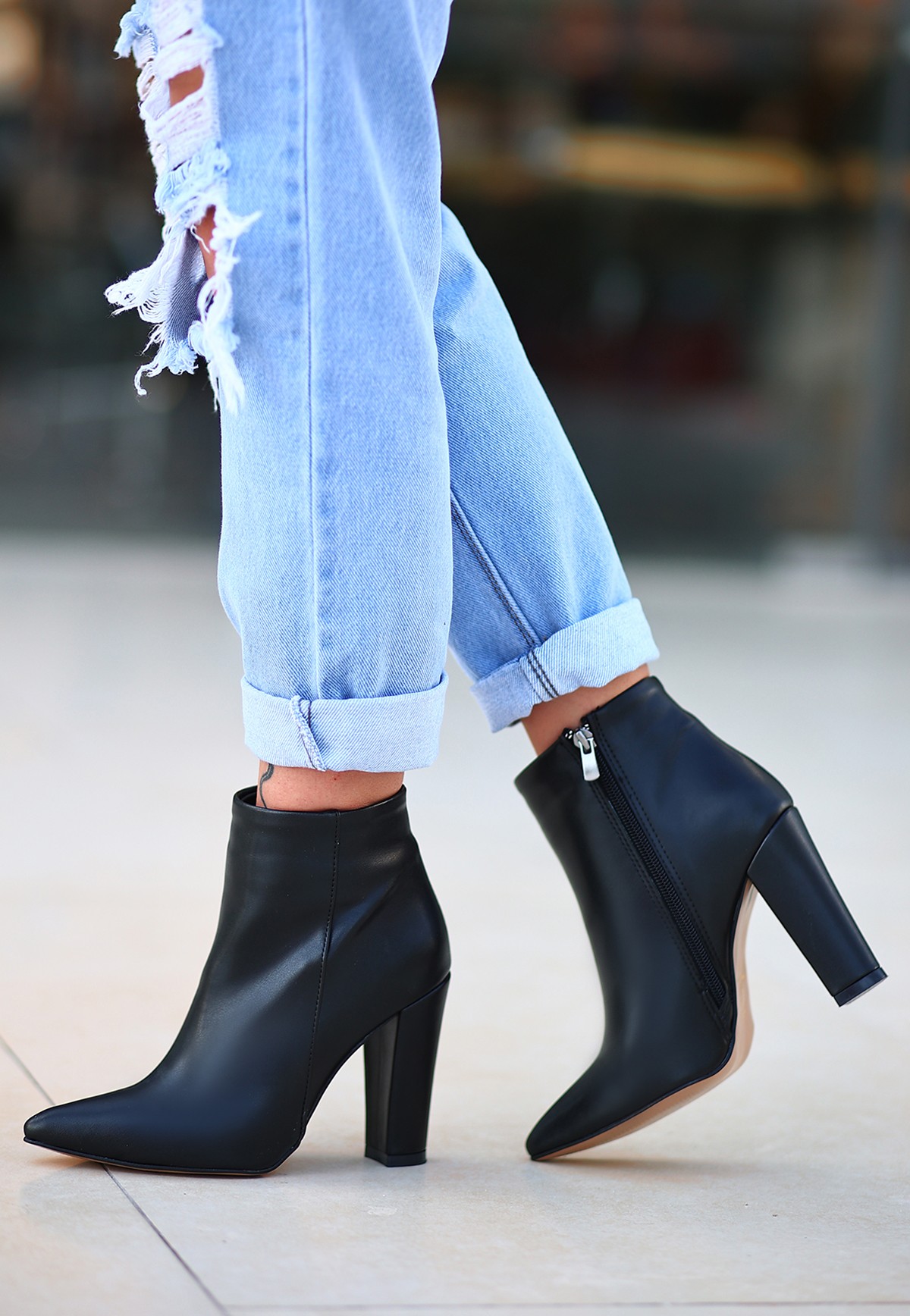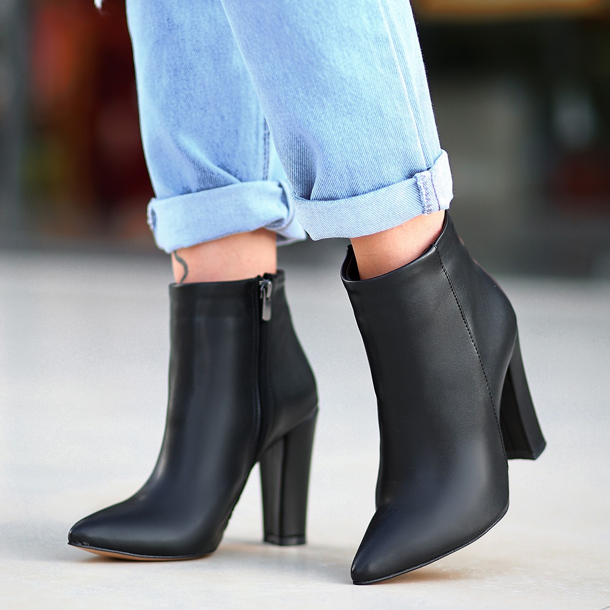 Kadın Ayakkabı Loora Siyah Cilt Topuklu Bot