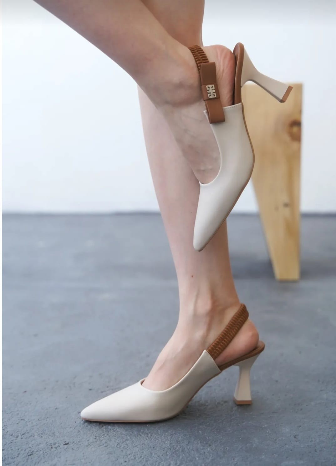 Kadın Ayakkabı Toran Bej Cilt Topuklu Ayakkabı
