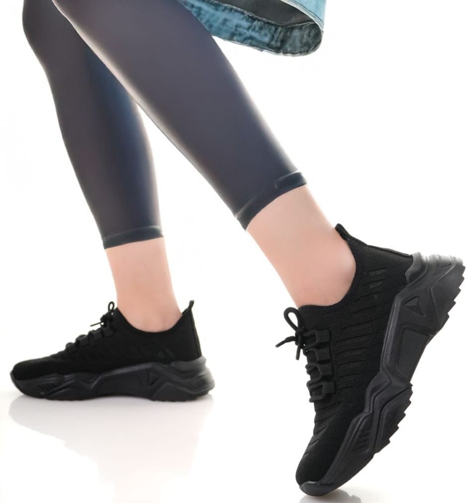 Kadın Spor Ante Siyah Triko Bağcıklı Spor Ayakkabı