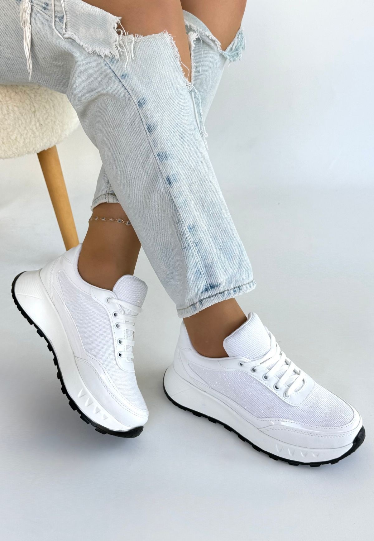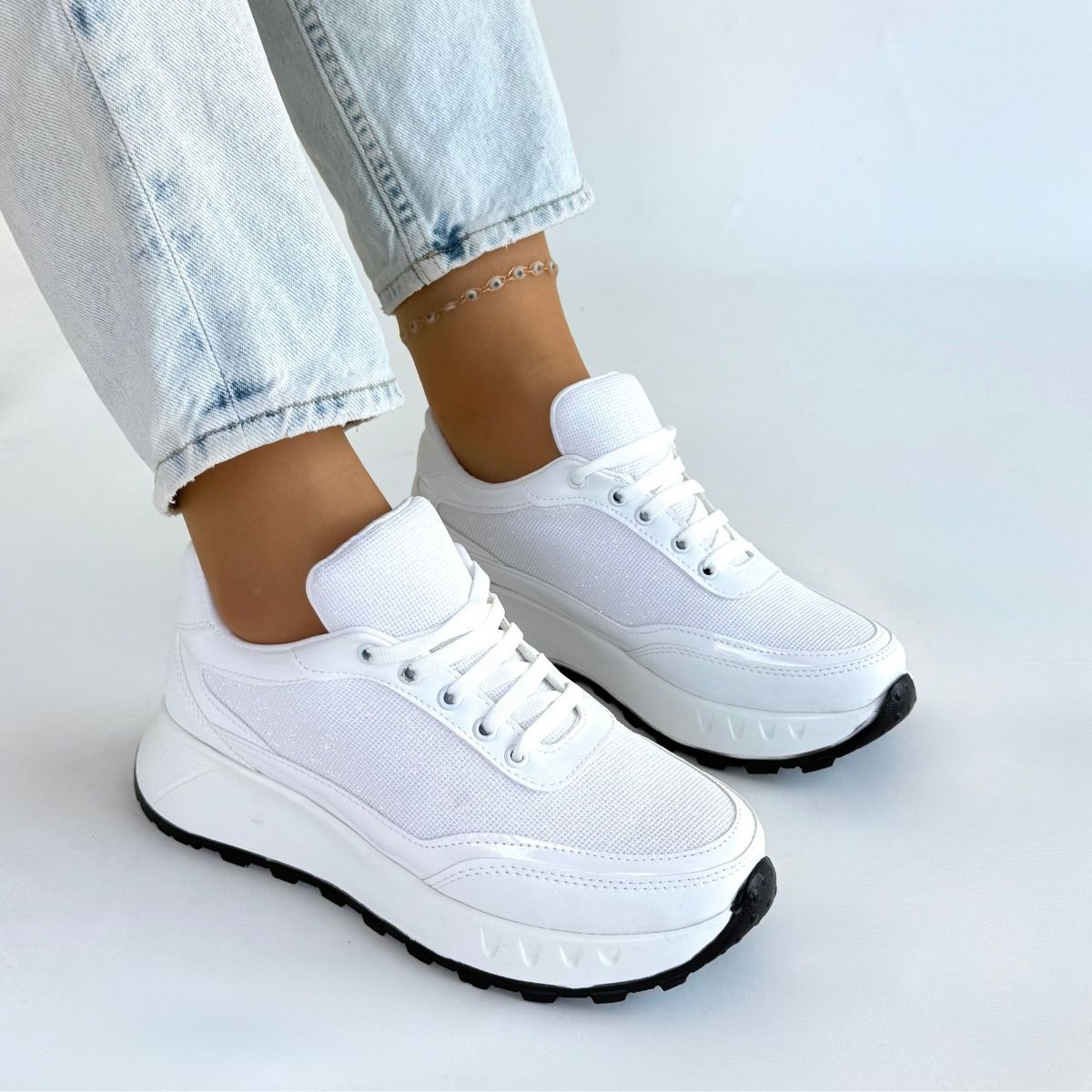 • Edva Beyaz Cilt Bağcıklı Spor Ayakkabı