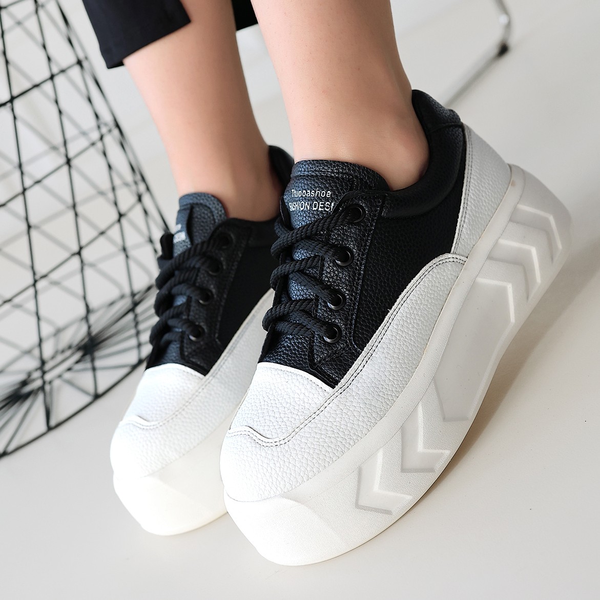 Kadın Spor Emwa Siyah Cilt Bağcıklı Spor Ayakkabı
