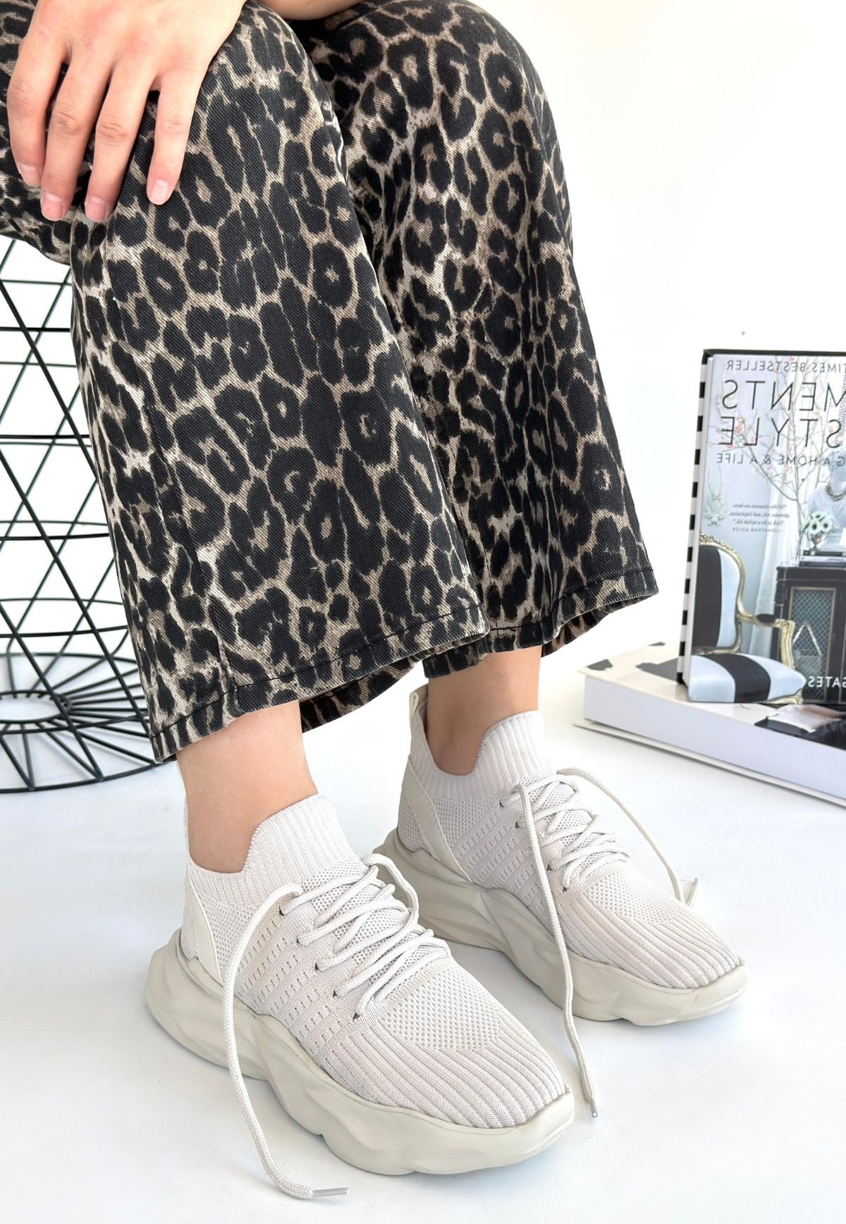 Kadın Spor Henta Bej Triko Bağcıklı Spor Ayakkabı