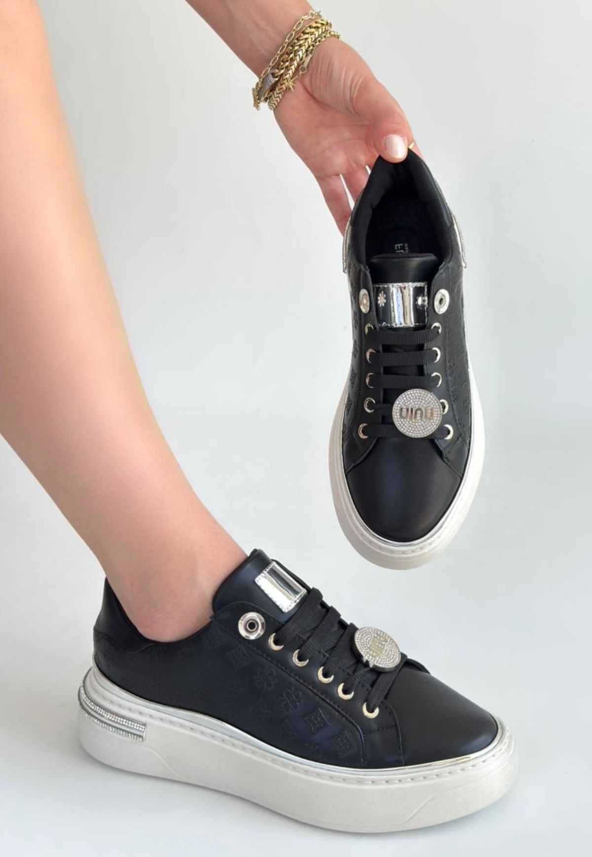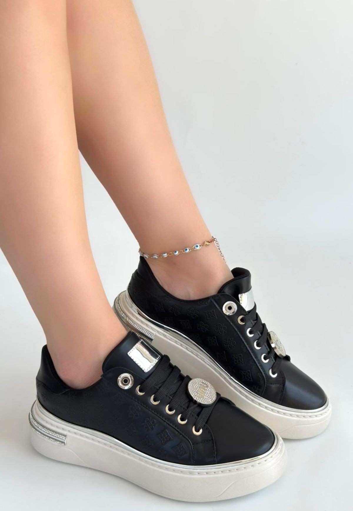 Kadın Spor Jlar Siyah Cilt Bağcıklı Spor Ayakkabı