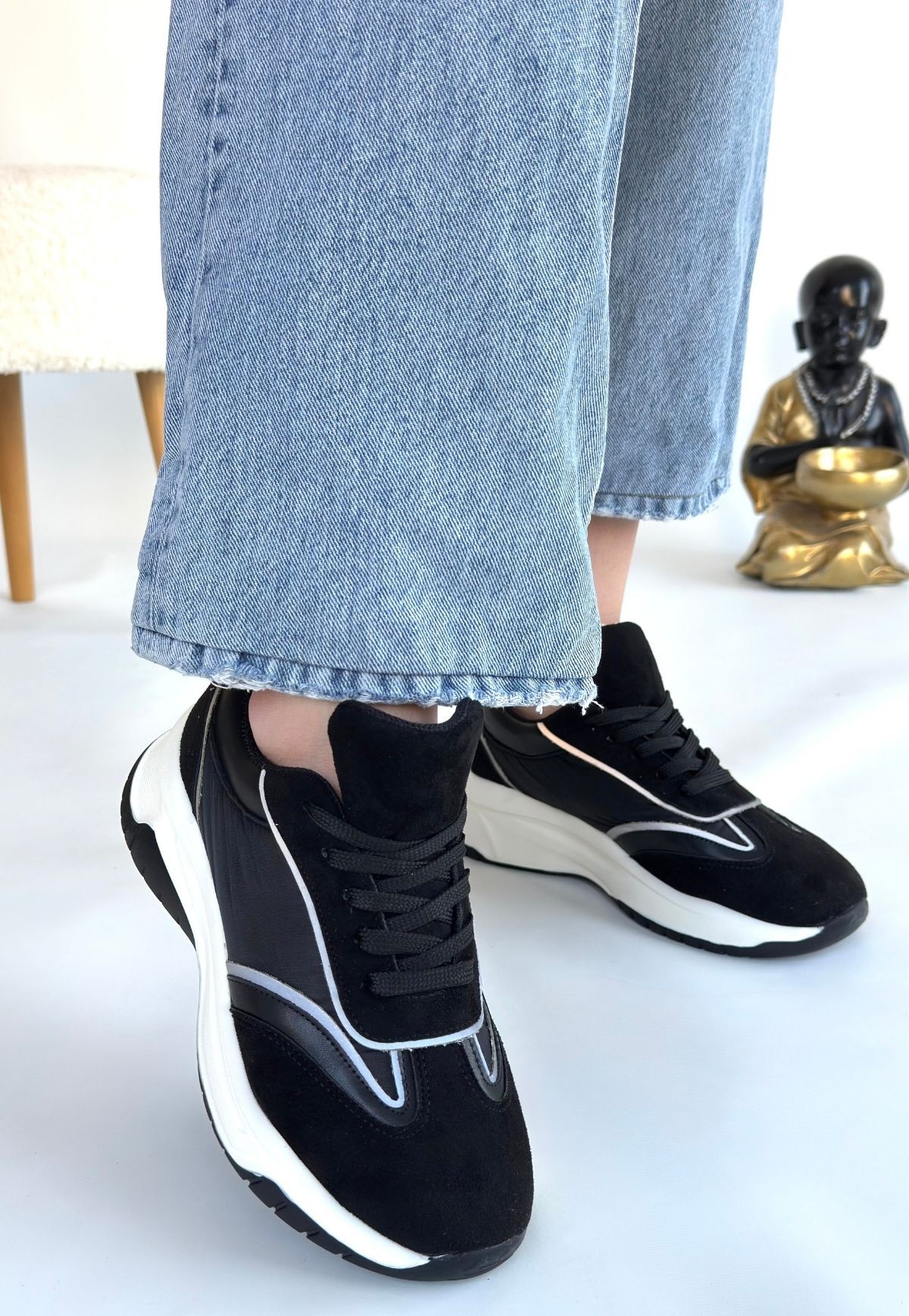 • Lemda Siyah Süet Bağcıklı Spor Ayakkabı