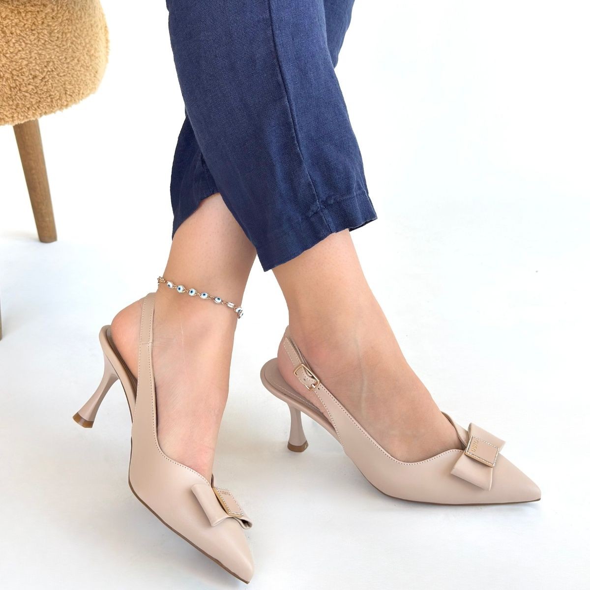 • Leyya Bej Cilt Topuklu Ayakkabı