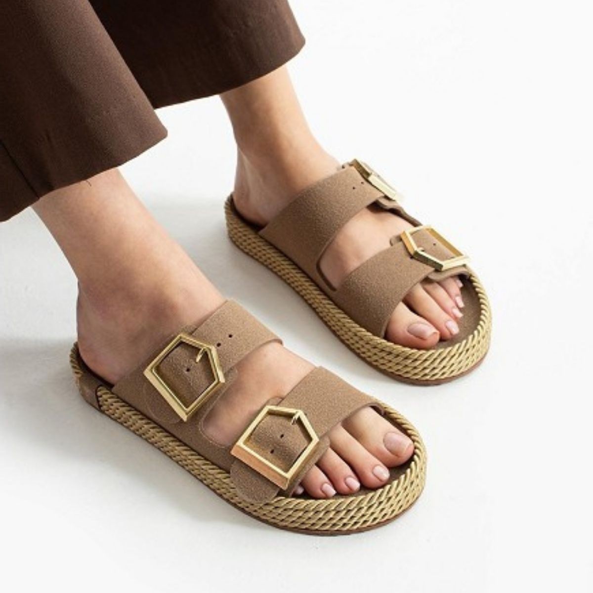 • Loera Vizon Nubuk Çift Tokalı Terlik