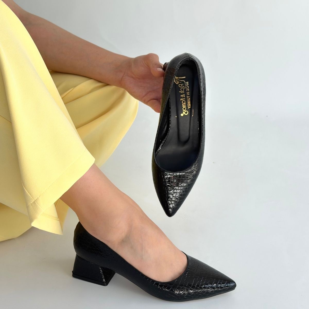 • Meort Siyah Rugan Topuklu Ayakkabı
