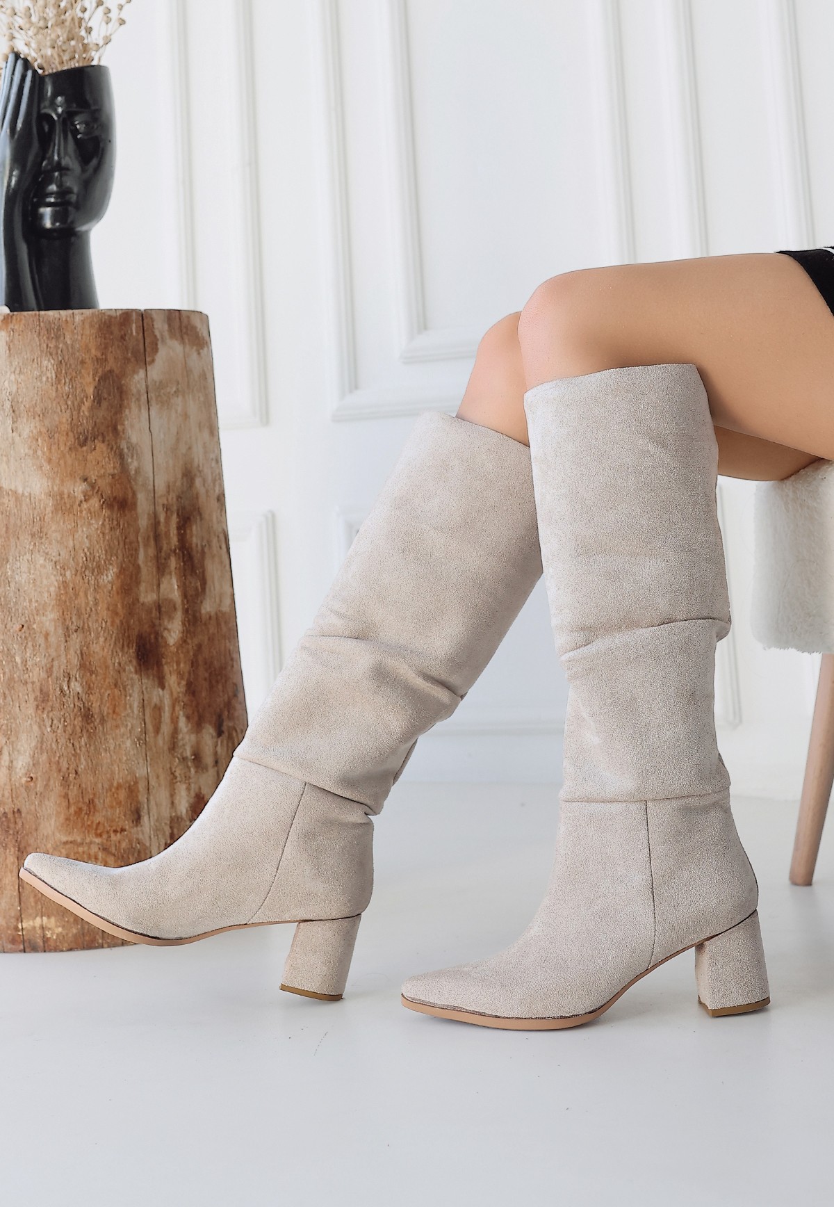 Detay: Topuklu Diz Altı Körüklü Çizme