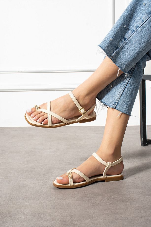 Sandalet Nordi Bej Cilt Kemerli Sandalet