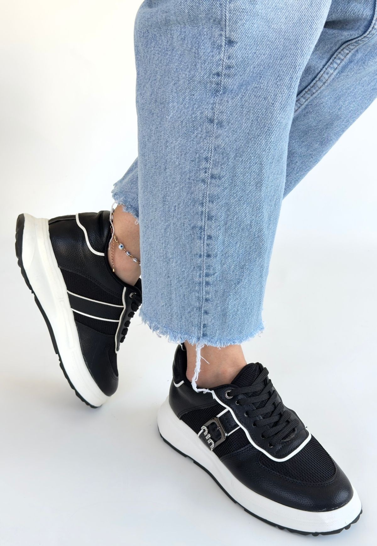• Tanwe Siyah Cilt Bağcıklı Spor Ayakkabı
