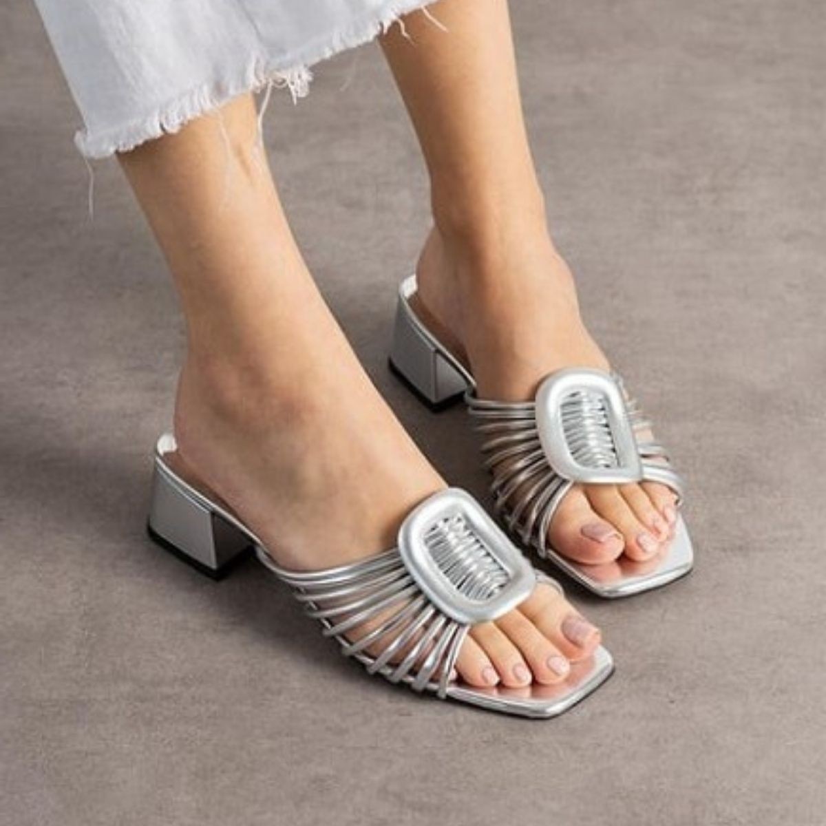 Terlik Anca Gümüş Rugan Topuklu Terlik