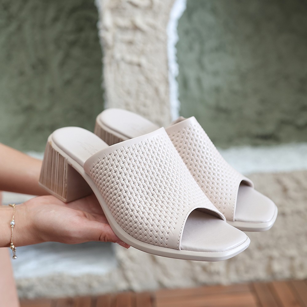 • Zanna Bej Cilt Topuklu Terlik