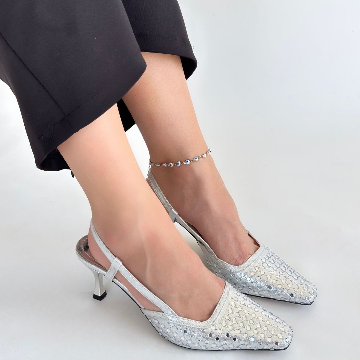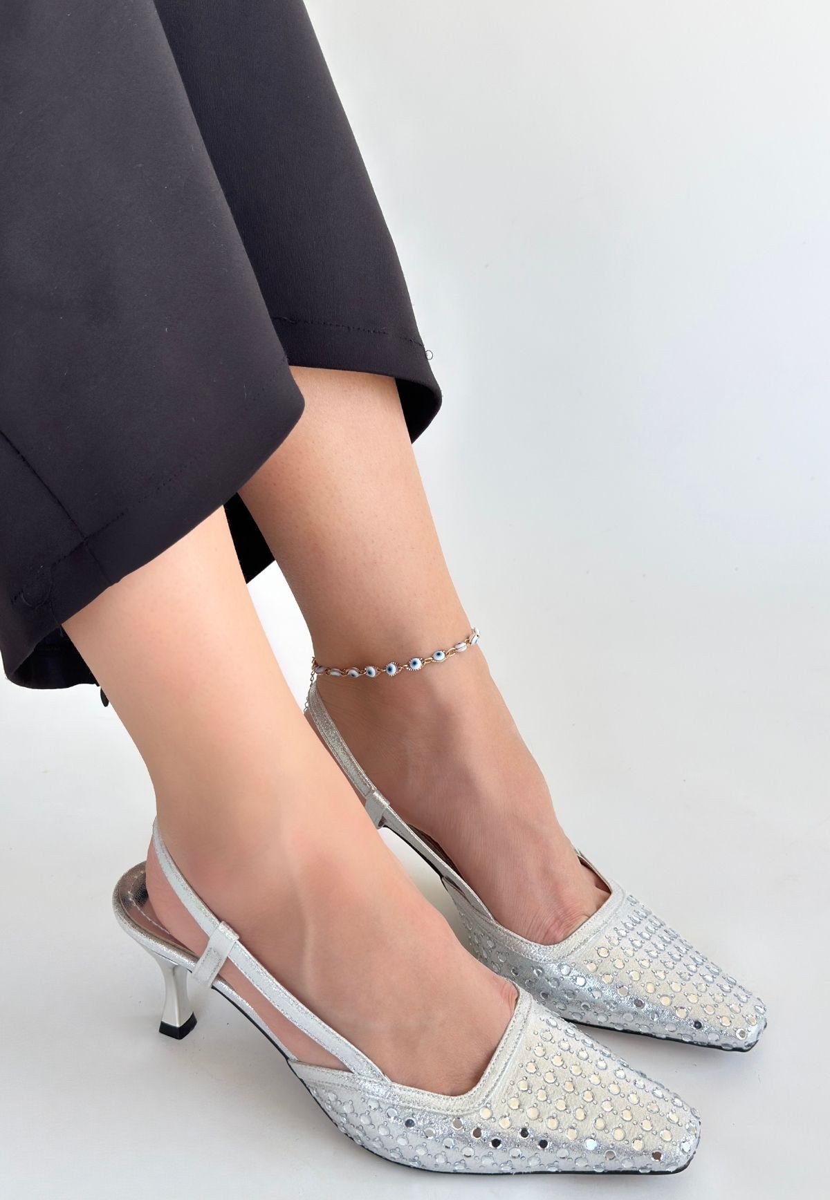 Topuklu Sione Gümüş Cilt Topuklu Ayakkabı