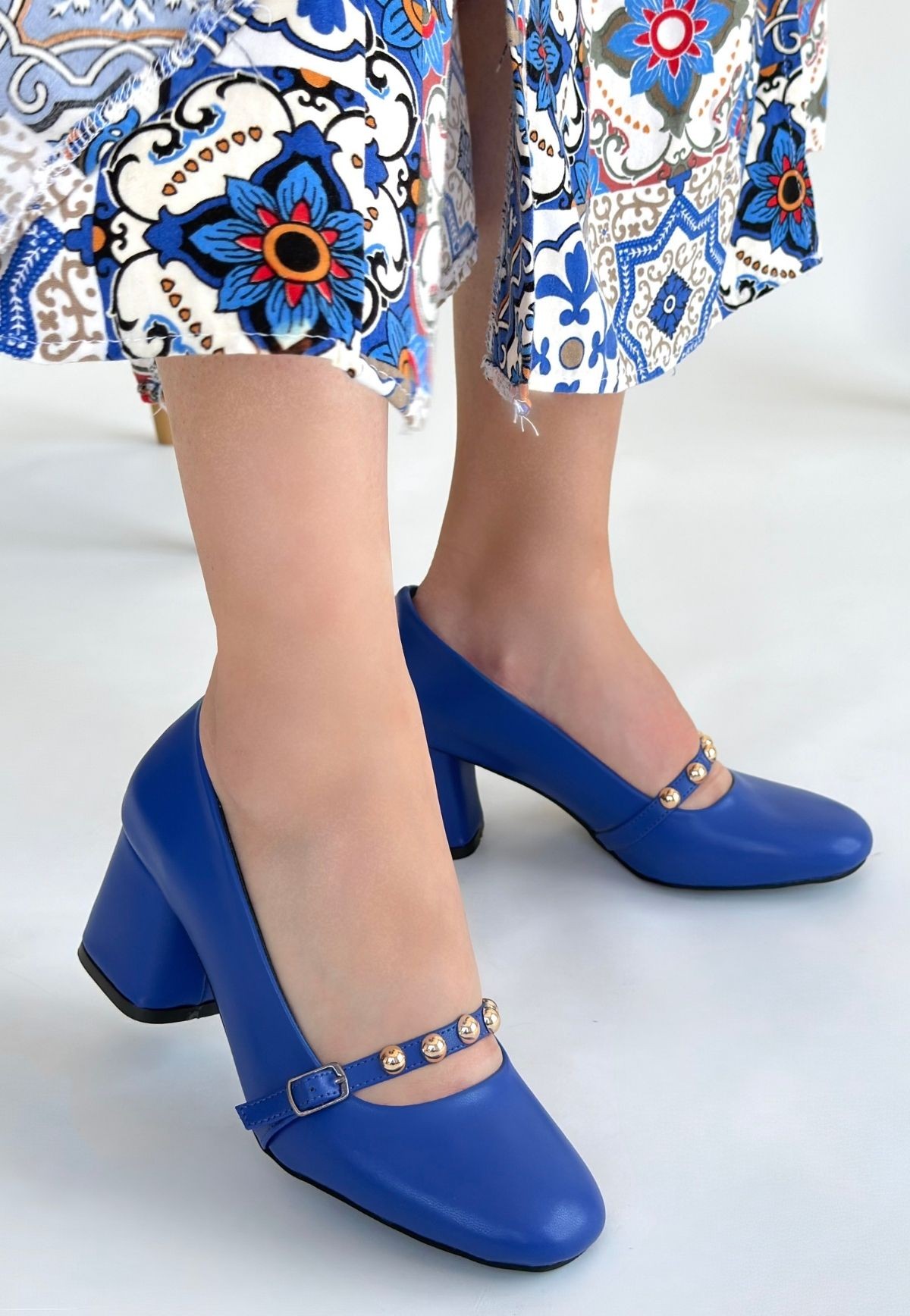 Topuklu Tino Mavi Cilt Topuklu Ayakkabı