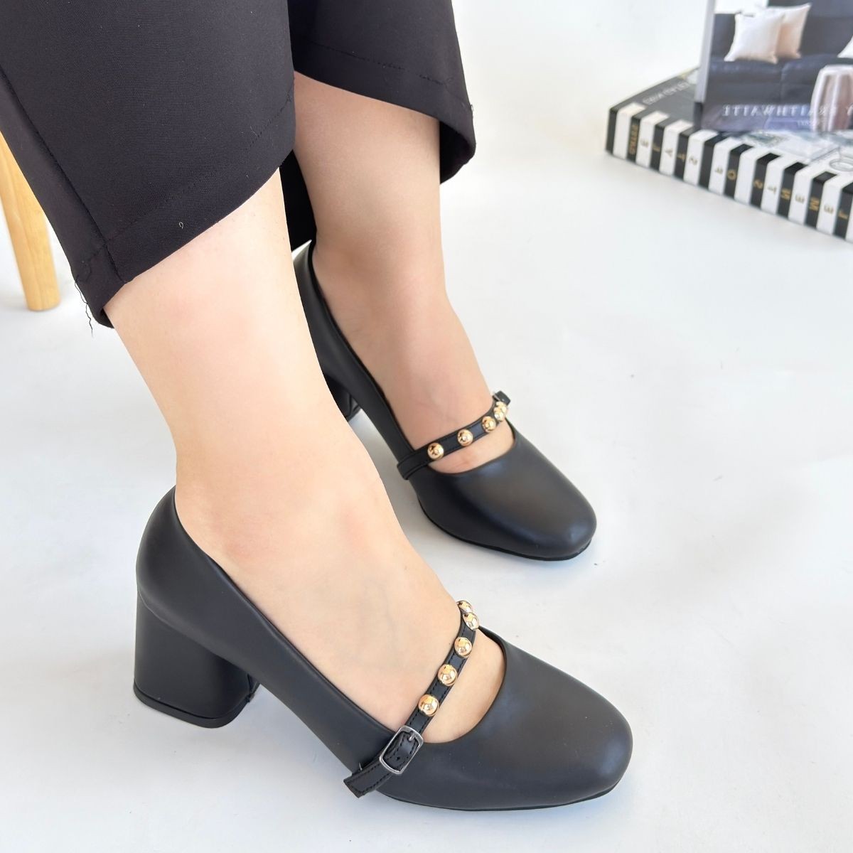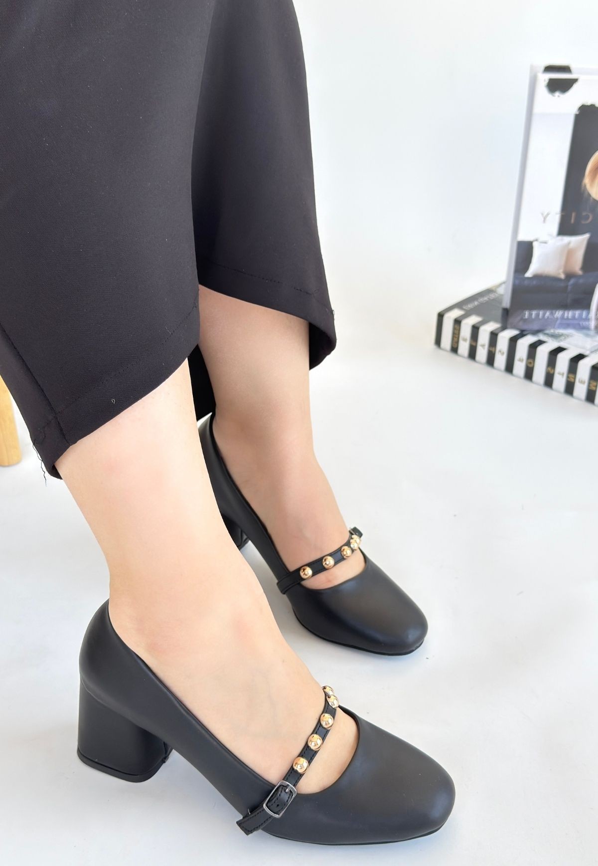 Topuklu Tino Siyah Cilt Topuklu Ayakkabı