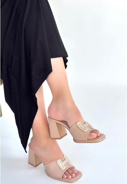 Caren Bej Cilt Topuklu Terlik